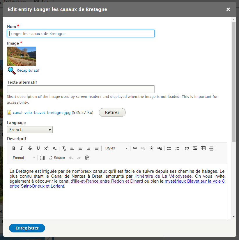Les pages éditoriales, témoignages et séjours, sont dotées du module “Visuels”. Celui-ci permet de mettre en page les photos et textes en vis à vis en alternant la position des images (gauche / droite).